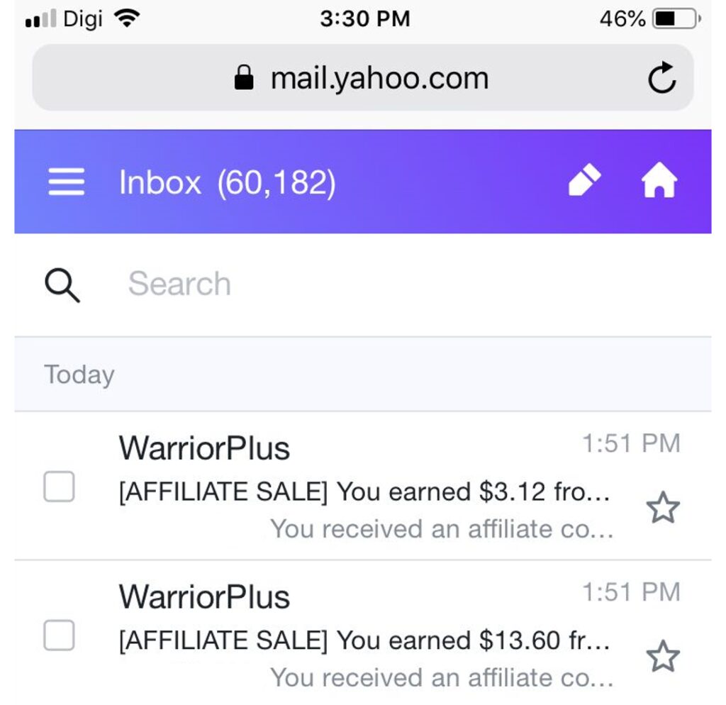 Saya dapat notification masuk ke Yahoo Mail bagitahu saya dapat 2 lagi komisyen USD sedangkan saya langsung tak promote pada hari tu.